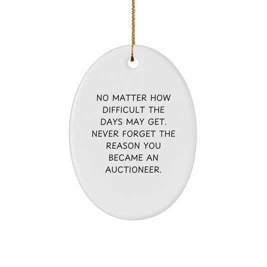 Auctioneer Gifts from Friends - Oval Ornament for Christmas - 'No Matter How Difficult The Days May Get' Inspirational Quote, Gifts for Auctioneer