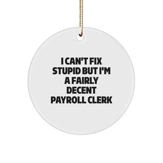 Funny Payroll Clerk Gifts from Friends, I Can't Fix Stupid But I'm A Fairly Decent Payroll Clerk Christmas Circle Ornament for Payroll Clerk