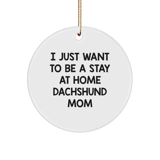 Funny Dachshund Mom Gifts - 'I Just Want To Be A Stay At Home Dachshund Mom' Circle Ornament for Dachshund Dog Lovers, Christmas Unique Presents for Her, Gifts from Mom to Dachshund Dog Mom