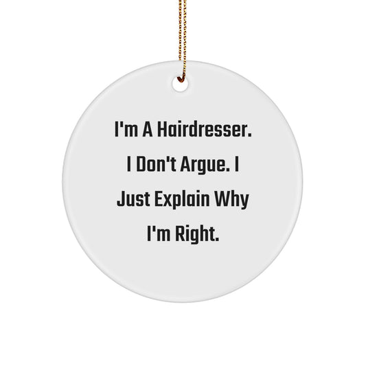 Funny Hairdresser Gifts from Friends - 'I'm Right!' Circle Ornament for Christmas