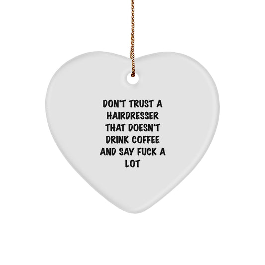 Funny Hairdresser Gifts from Men to Hairdresser - White Heart Ornament for Christmas