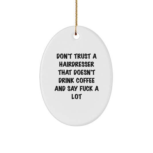 Funny Hairdresser Gifts - Oval Ornament for Christmas - 'Don't Trust a Hairdresser...' Quote - Gifts from Friends to Hairdresser