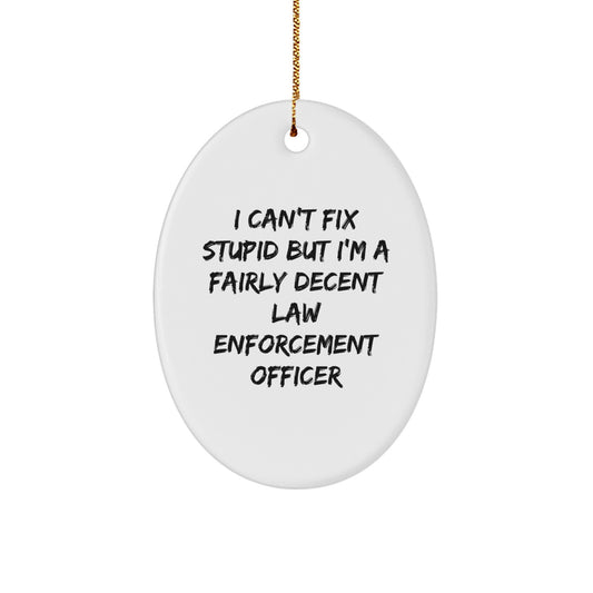 Funny Law Enforcement Officer Gifts from Friends - 'I Can't Fix Stupid' Oval Ornament for Christmas