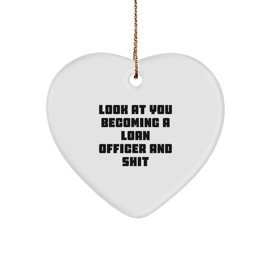 Funny Loan Officer Gifts from Friends and Family - 'Look At You Becoming A Loan Officer And Shit' Heart Ornament for Christmas