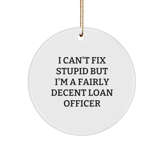 Funny Loan Officer Gifts for Friends - 'I Can't Fix Stupid But I'm A Fairly Decent Loan Officer' Circle Ornament for Christmas