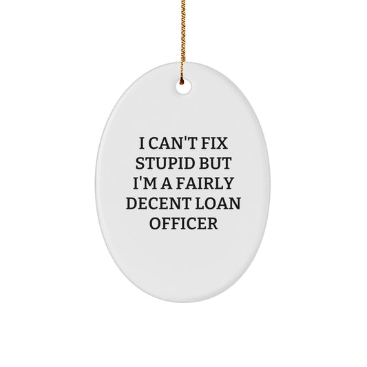 Funny Loan Officer Gifts, I Can't Fix Stupid But I'm A Fairly Decent Loan Officer Oval Ornament, Christmas Unique Gifts from Friends to Loan Officers
