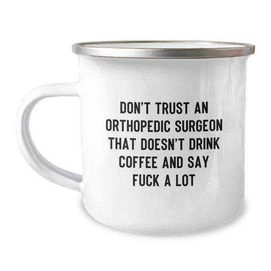 Orthopedic Surgeon Funny Gifts from Friends and Family, 'Don't Trust An Orthopedic Surgeon That Doesn't Drink Coffee And Say F--k A Lot' Camping Mug, Graduation Unique Gifts for Him