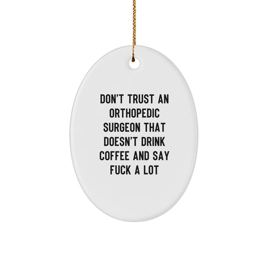 Funny Orthopedic Surgeon Gifts - Oval Ornament for Christmas - Don't Trust An Orthopedic Surgeon That Doesn't Drink Coffee And Say 'F--k A Lot' - Gifts from Friends and Family for Orthopedic Surgeon