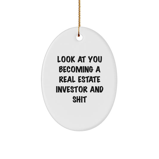 Funny Real Estate Investor Gifts from Men - Look At You Becoming A Real Estate Investor And Shit Oval Ornament for Christmas