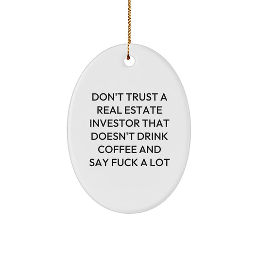 Funny Real Estate Investor Gifts for Men, Oval Ornament with Quote 'Don't Trust A Real Estate Investor That Doesn't Drink Coffee And Say F--k A Lot', Christmas Unique Gifts from Friends, Coworkers