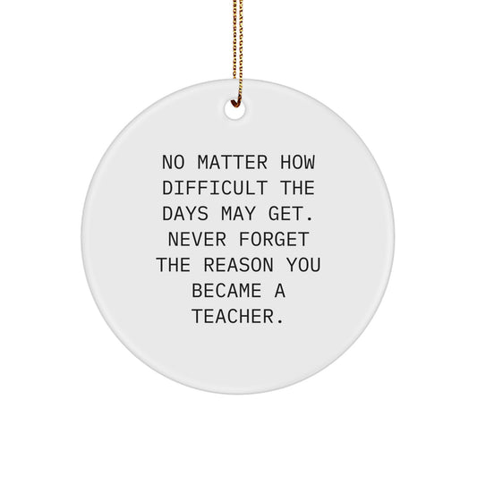 Teacher Gifts from Friends - Inspirational Christmas Circle Ornament for Men, Women, Family, Coworkers - 'No Matter How Difficult...' Quote, White, 2.75" Tall, 0.5 oz, Durable MDF, High-Gloss Finish