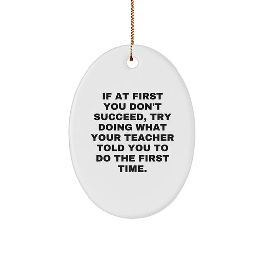Funny Teacher Gifts, Oval Ornament, 'If At First You Don't Succeed...' - Gifts from Men for Teachers, Christmas Unique Gifts