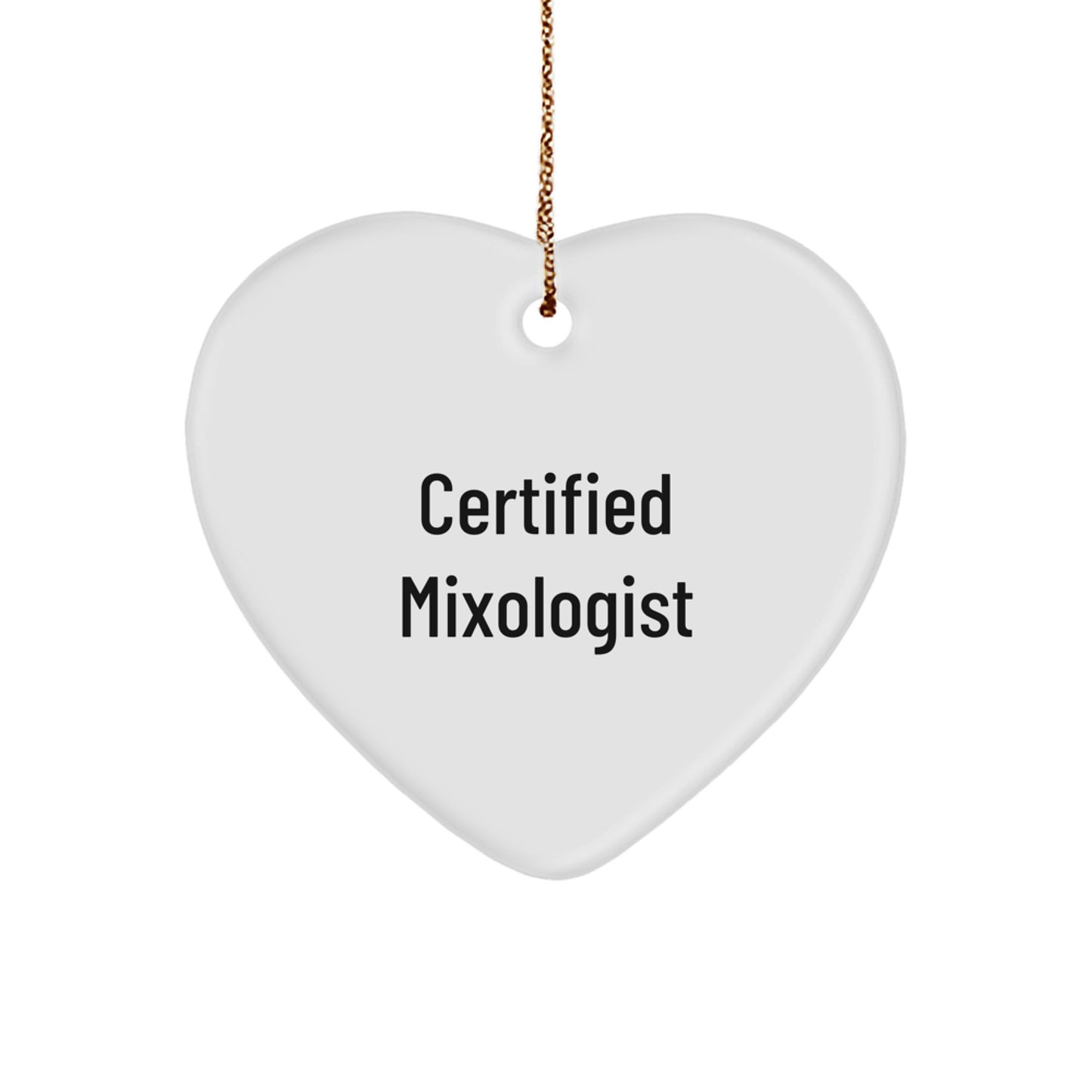 - Don't miss out and make someone's day a little brighter! This certified mixologist heart ornament is the perfect way to show your appreciation for the mixologists in your life. With its unique design, high-quality materials, and funny quote, it's sure to be a treasured keepsake for years to come.