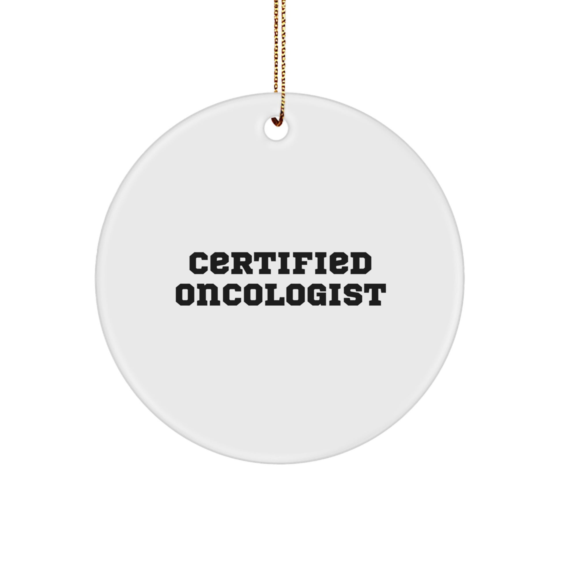 Certified Oncologist's Humorous Holiday Gift, 'Funny' Quote Circle Ornament, White, 2.75'' Tall, Durable MDF, Gifts from Friends, Gifts for Oncologists, Unique Christmas Unique Gifts