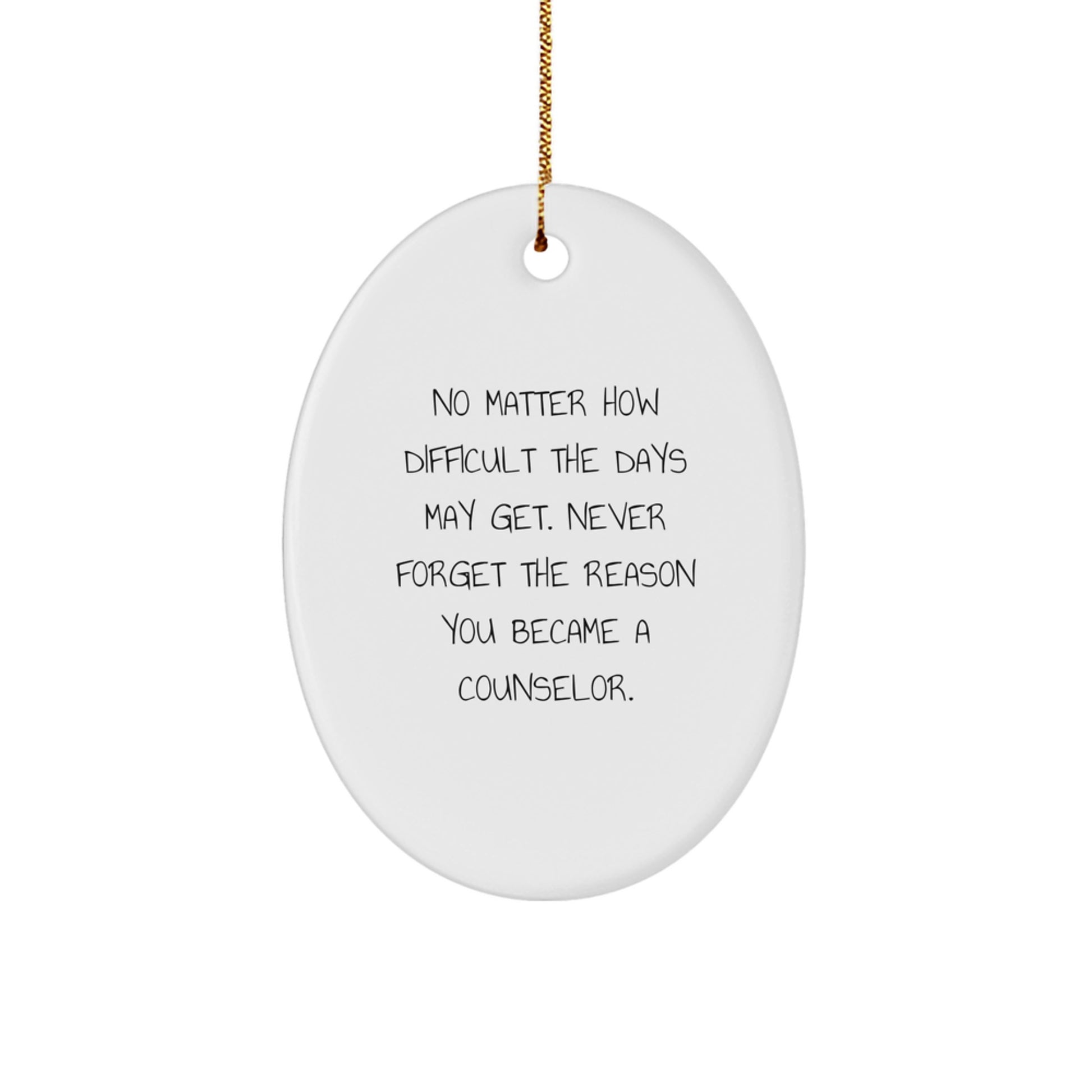 - This inspirational Oval Ornament is a thoughtful gift for Counselors and a reminder of their reason for becoming a Counselor. The quote 'No Matter How Difficult...' is a heartfelt reminder of the challenges they face daily.