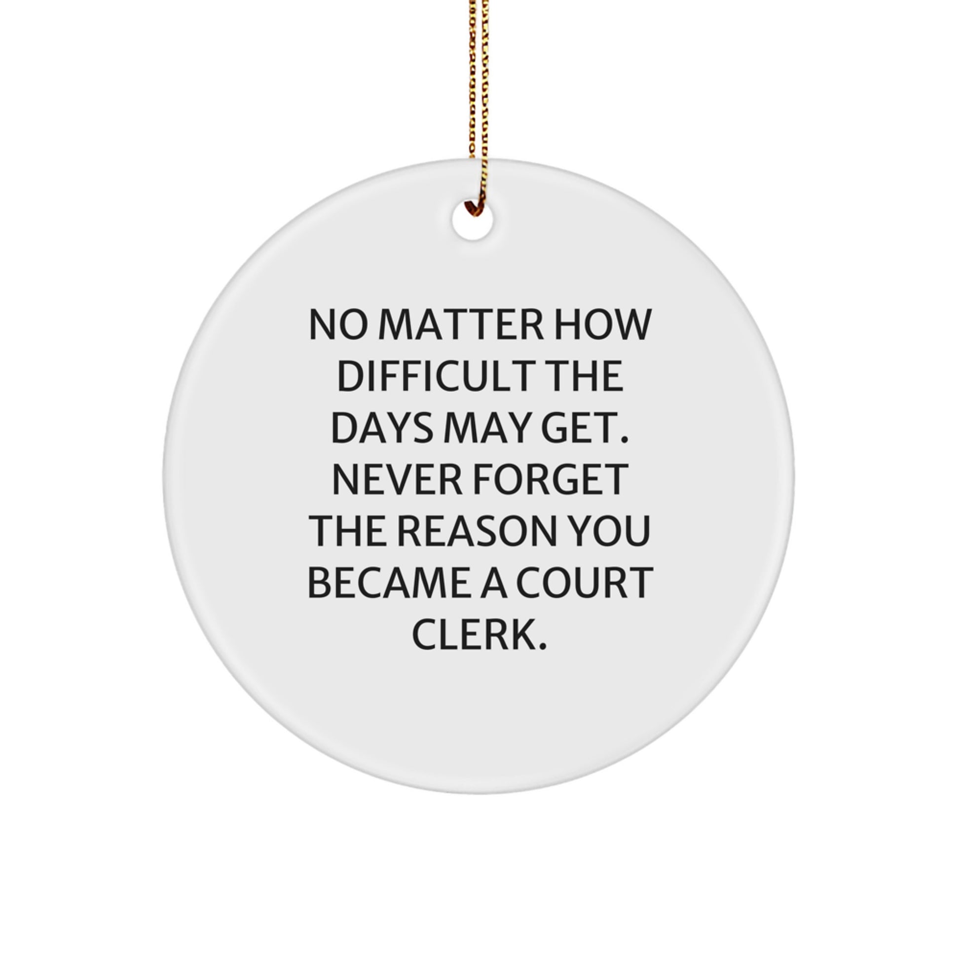 This ornament is also a great way to remind court clerks of the importance of their work and the impact they have on people's lives. The quote 'No Matter How Difficult The Days May Get. Never Forget The Reason You Became A Court Clerk.' is a powerful reminder of the significance of their role and the difference they make.