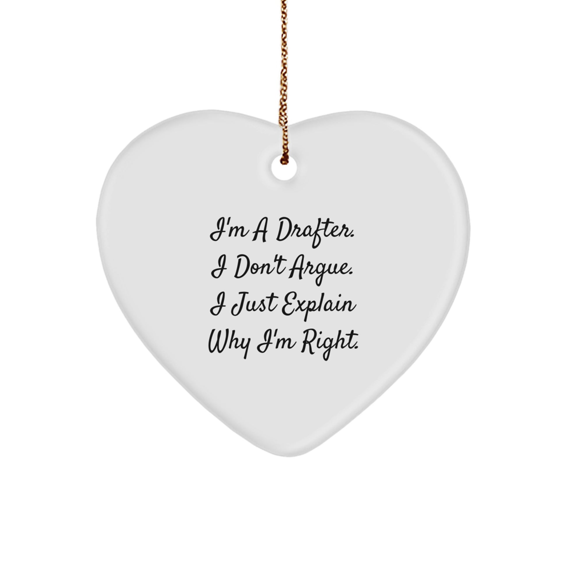 - This heart-shaped ornament is the ideal gift for any Drafter who loves to explain why they're right. The funny quote adds a touch of humor to any holiday decor.