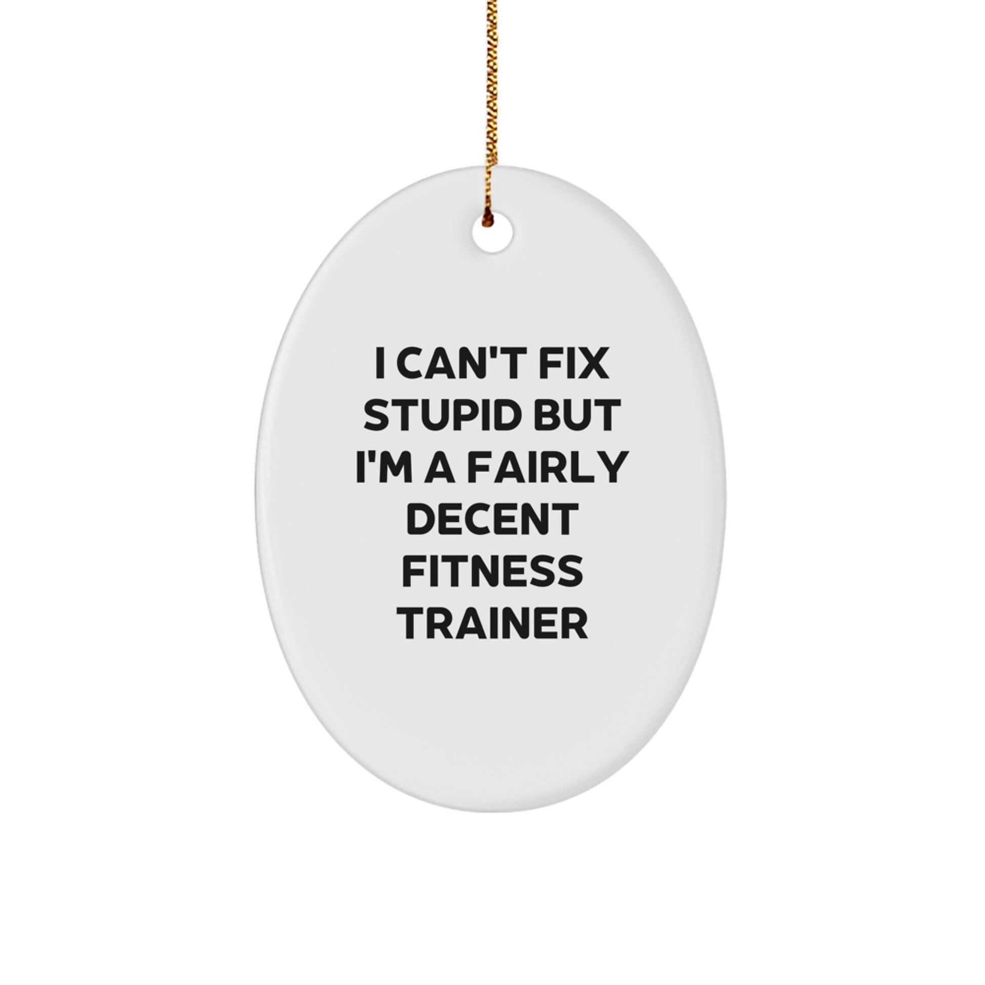 Fitness Trainer Oval Ornament Gifts from Friends for Christmas - 'I Can't Fix Stupid But I'm A Fairly Decent Fitness Trainer' Humorous Oval Decoration