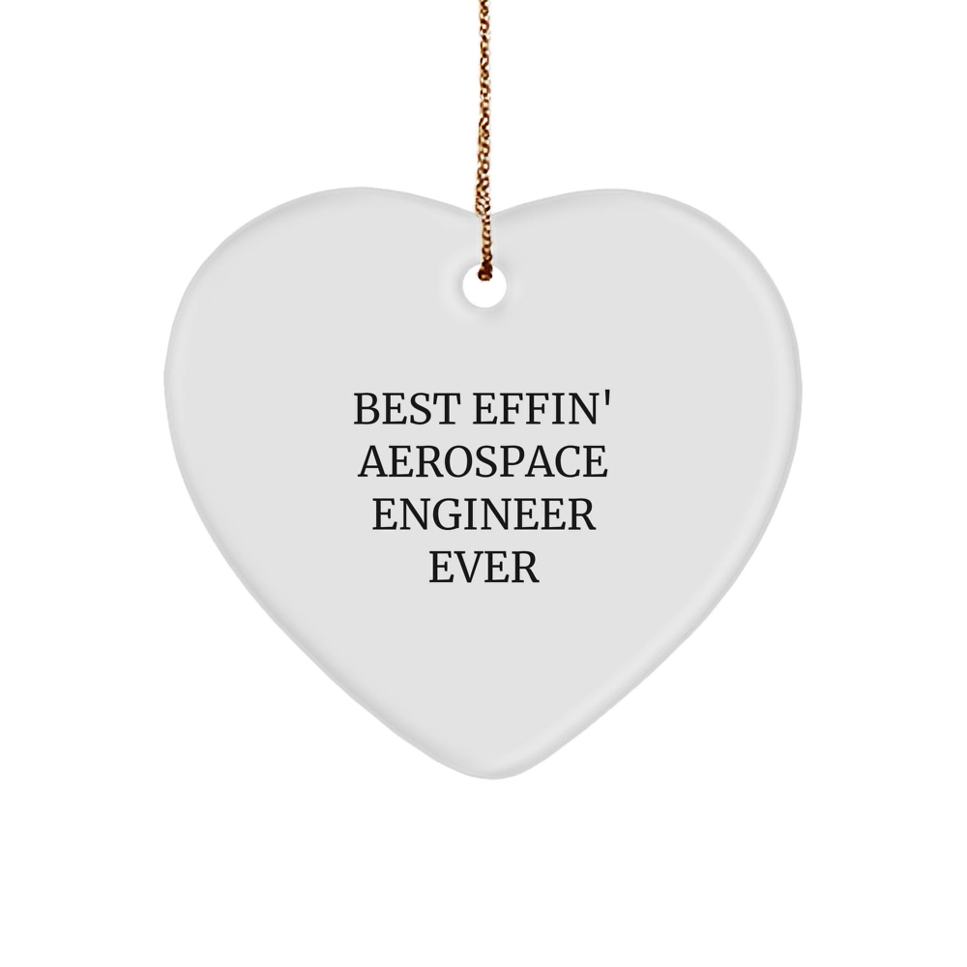 Are you looking for a hilarious gift for the Aerospace Engineer in your life? Look no further! This funny heart ornament is the perfect way to show your appreciation for their hard work and dedication. The quote 'Best Effin' Aerospace Engineer Ever' is sure to bring a smile to their face. Whether you're shopping for a birthday, Christmas, or just because, this unique gift is sure to be a hit.