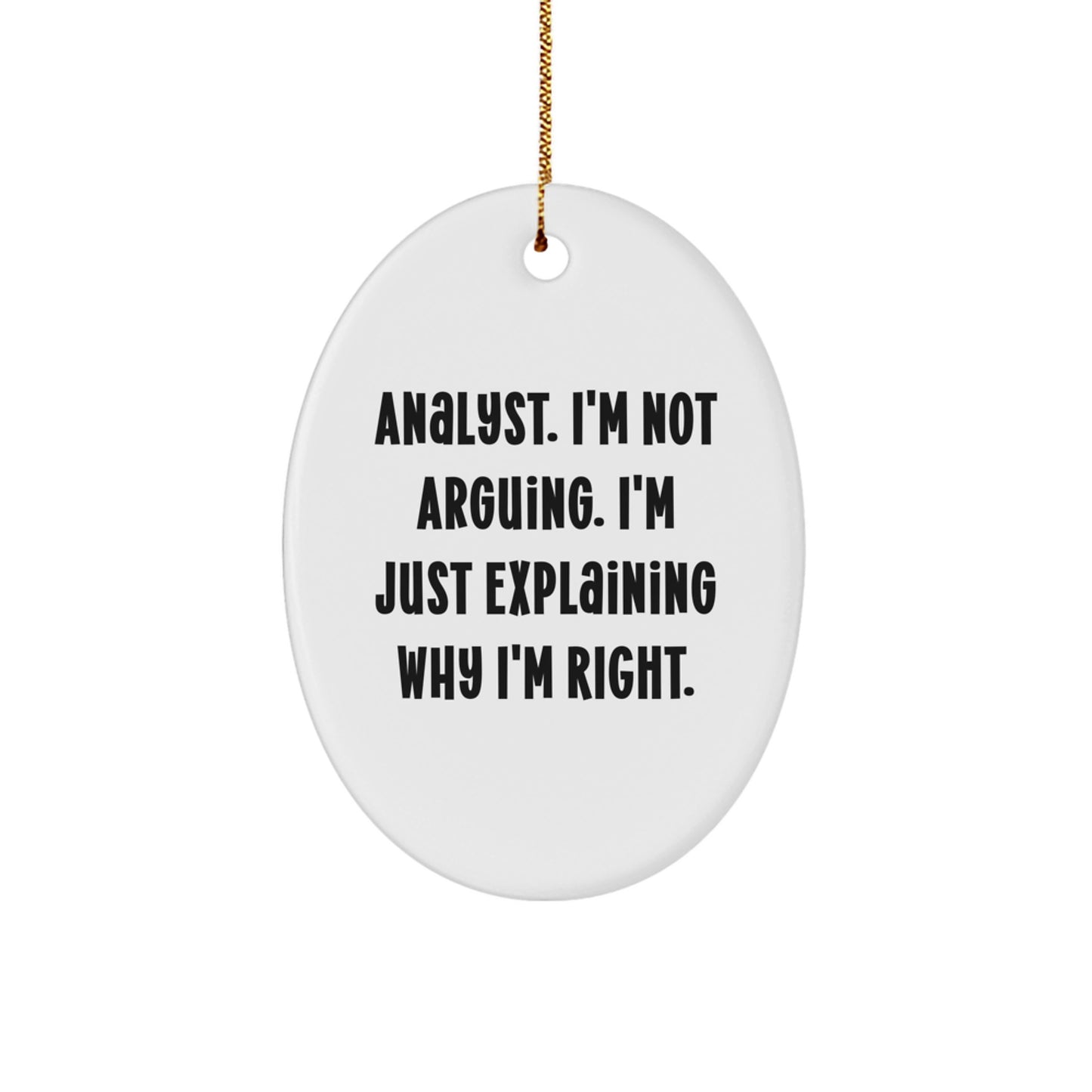 - Bring joy and cheer to your loved ones this holiday season with this Analyst Oval Ornament. 'I'm Not Arguing. I'm Just Explaining Why I'm Right.' - a witty and humorous quote that's sure to spark conversation. Hang it proudly on your tree or mantle and get ready for the holiday season!