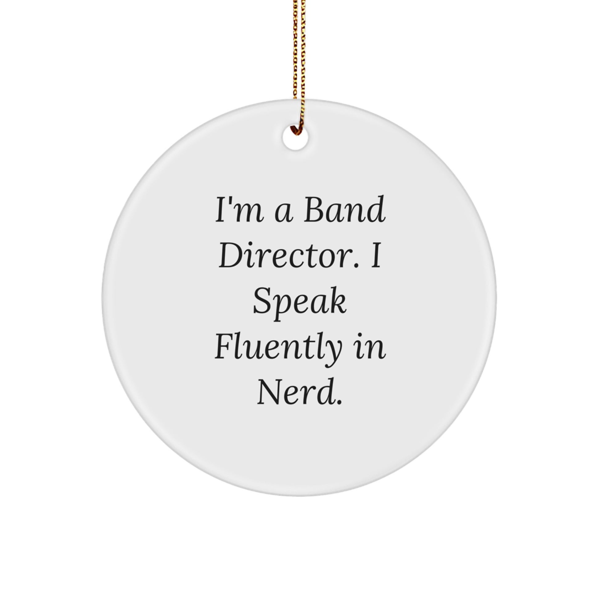 Funny Band Director Gifts, Circle Ornament for Christmas, 'I'm a Band Director. I Speak Fluently in genius.' Quote, Gifts from Friends or Family for Him or Her