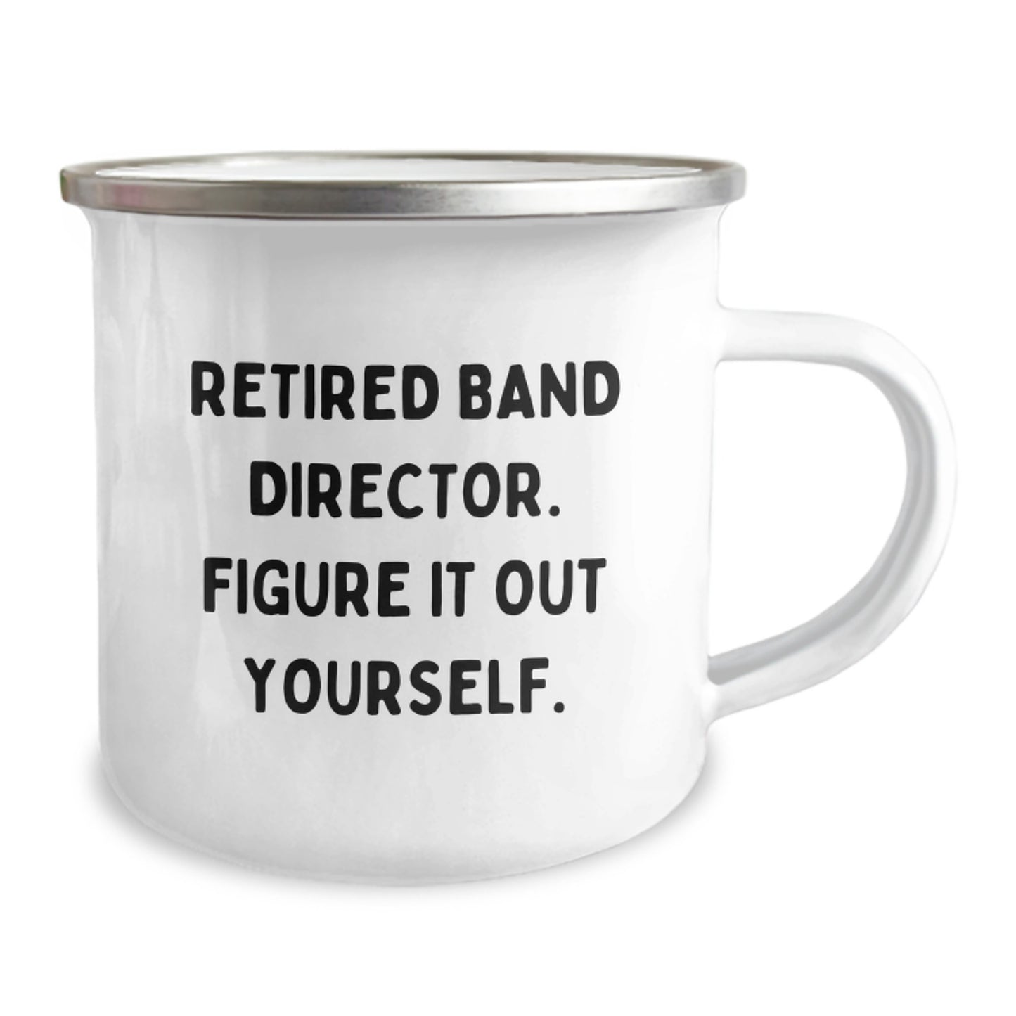 Are you searching for a unique gift for the Band Director in your life? Look no further! This humorous camping mug is the perfect way to show your appreciation for their hard work and dedication. With its funny quote, 'Retired Band Director. Figure It Out Yourself.,' this mug is sure to bring a smile to their face.