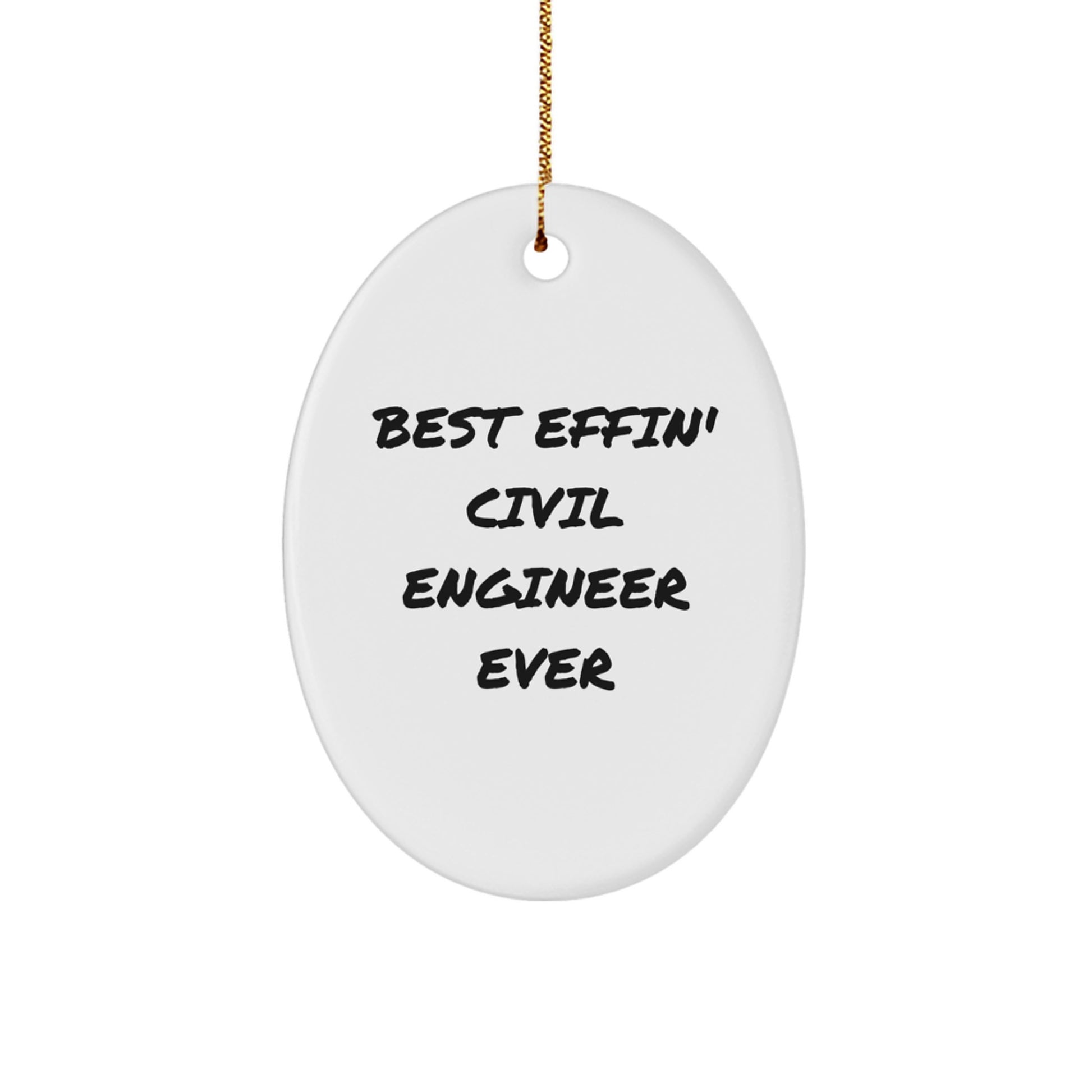 - This Best Effin' Civil Engineer Ever Oval Ornament is a unique and thoughtful gift for the civil engineer in your life, showcasing their profession in a fun and lighthearted way.