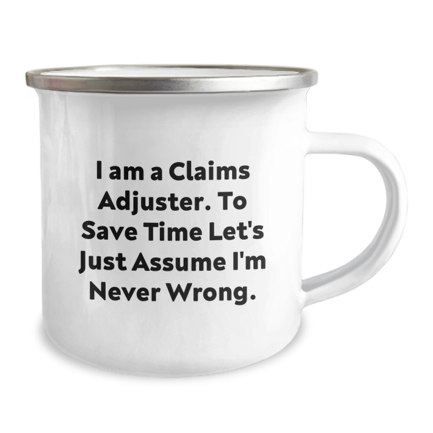 Are you tired of the same old boring gifts for claims adjusters? Look no further! This hilarious 'I Am A Claims Adjuster. To Save Time Let's Just Assume I'm Never Wrong.' Camping Mug is the perfect way to show your Claims Adjuster friend that you appreciate their hard work and sense of humor.