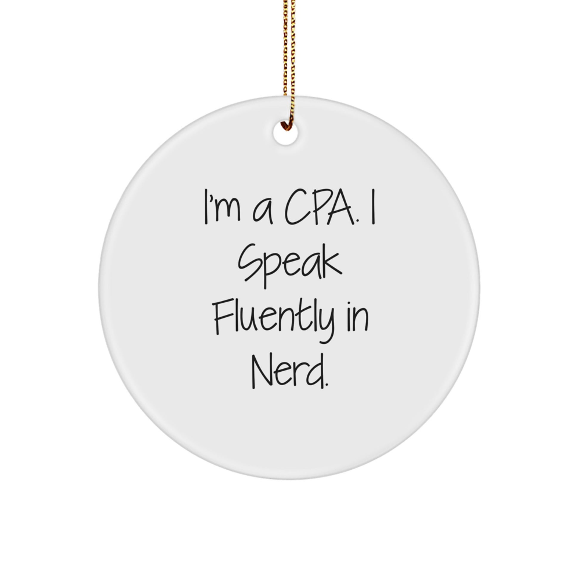 - Unique Circle Ornament with funny quote 'I'm A Cpa. I Speak Fluently In genius.' that's sure to bring a smile to any CPA's face