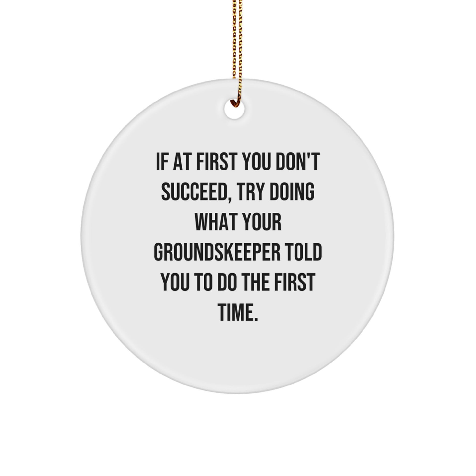 - Make your holiday decorations stand out with this unique 'If At First You Don't Succeed, Try Doing What Your Groundskeeper Told You To Do The First Time.' inspired Circle Ornament, designed by a true Groundskeeper, perfect for the quirky and fun-loving individuals in your life.