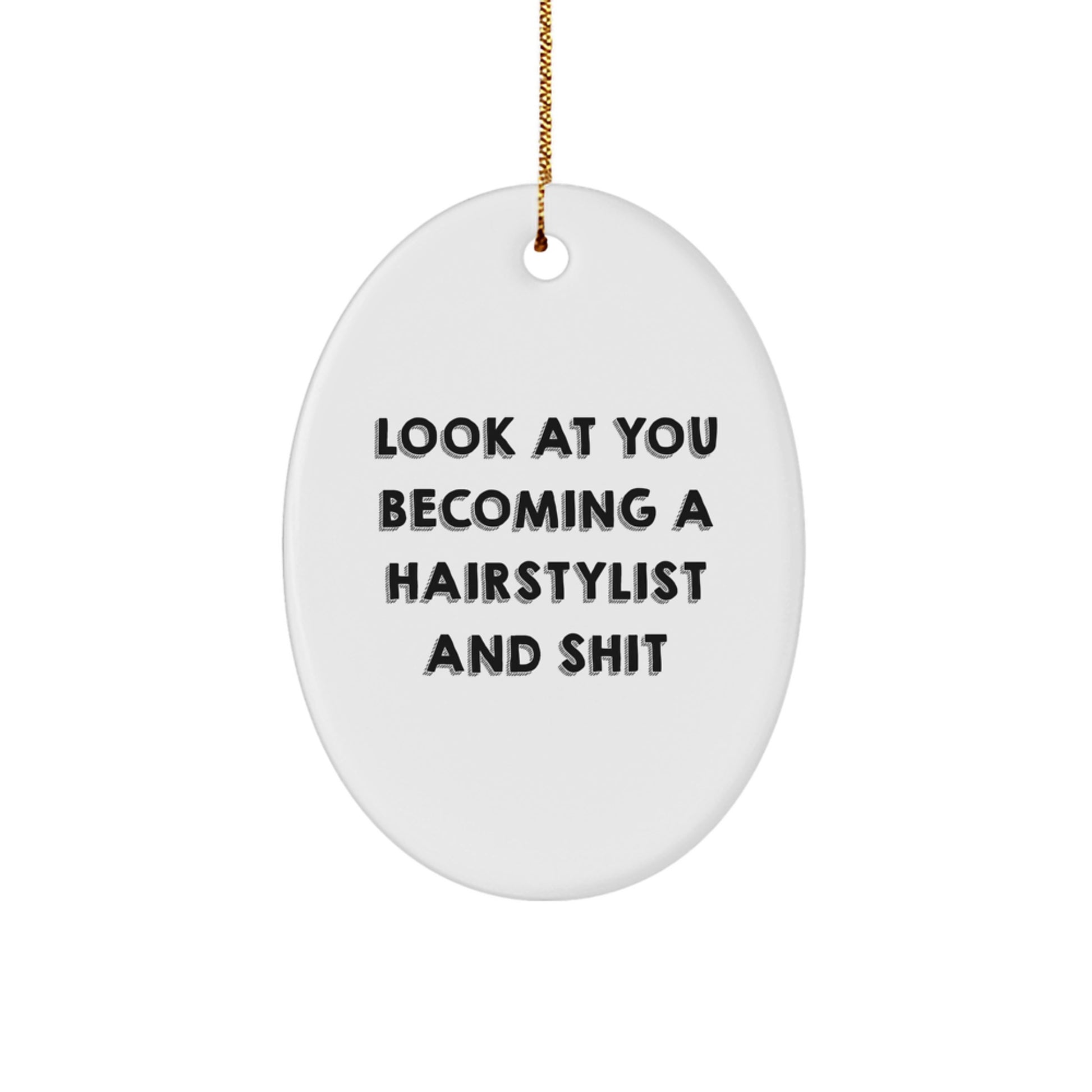 Funny Hairstylist Gifts from Friends to Hairstylist - Oval Ornament with Look At You Becoming A Hairstylist And Shit Quote, Christmas Unique Gifts