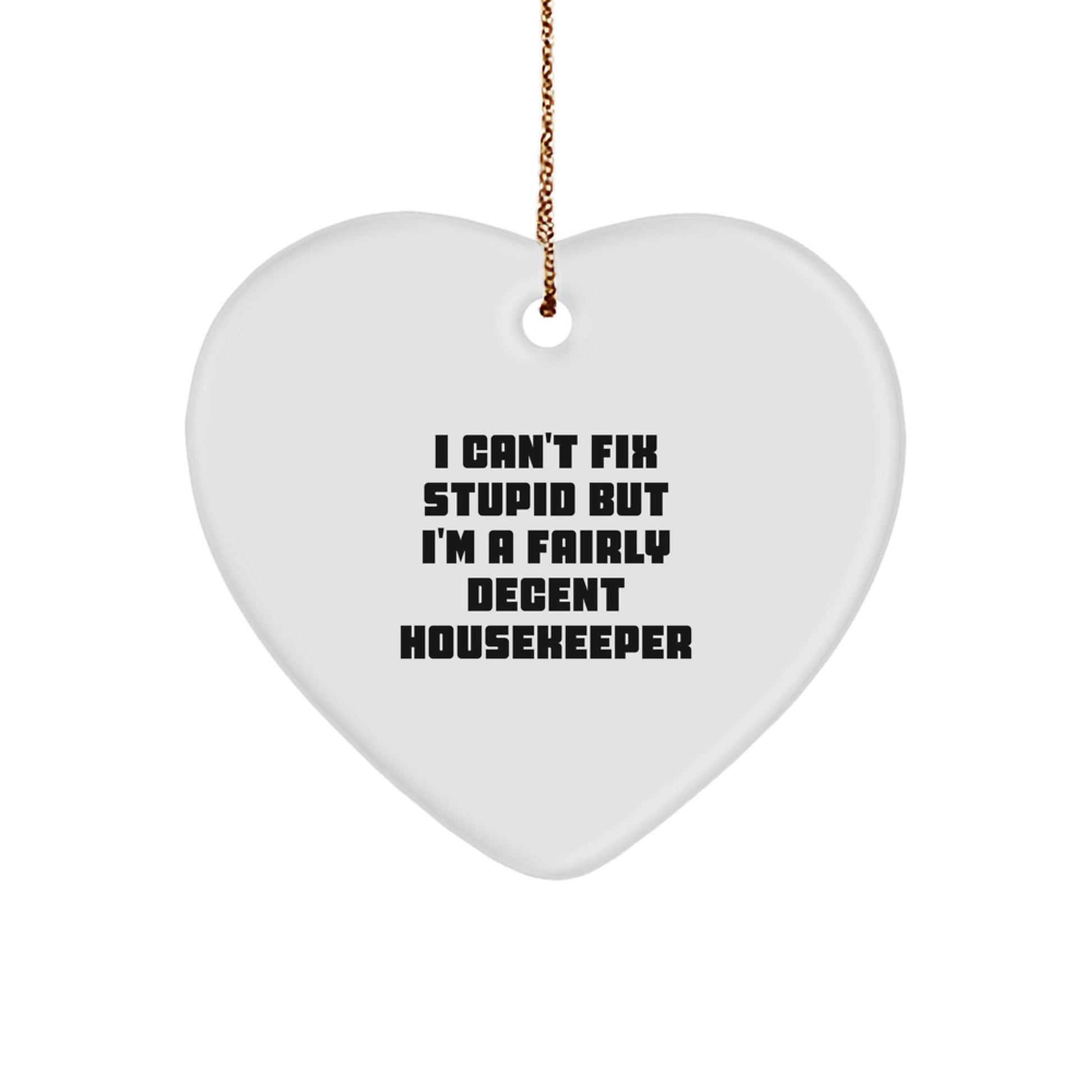 Funny Housekeeper Heart Ornament Gifts for Women Friends Family - I Can't Fix Stupid But I'm A Fairly Decent Housekeeper, White Heart-Shaped MDF Ornament for Stress-Free Decorating