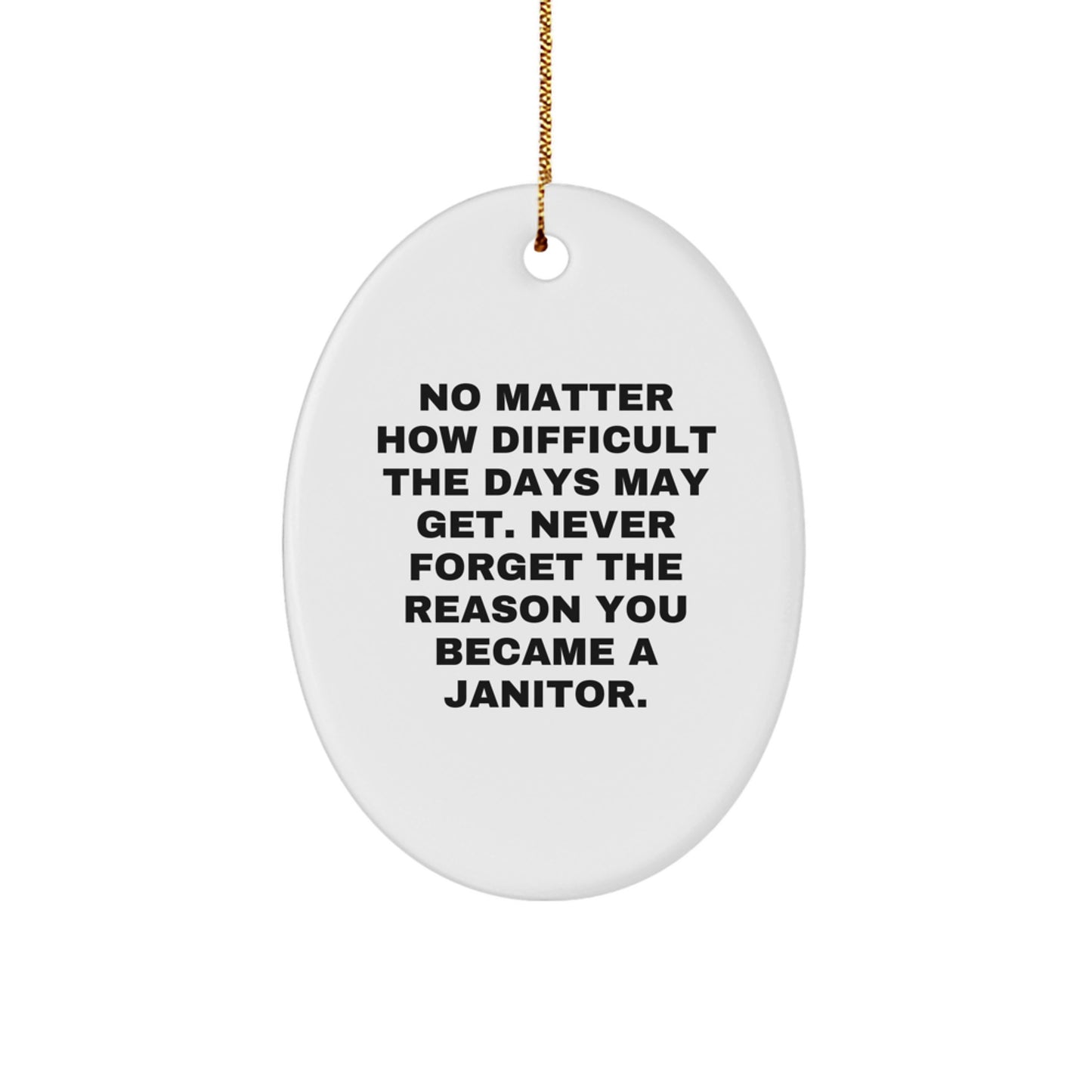 Funny Janitor Gifts from Friends for Janitor, Oval Ornament with Inspirational Quote, Christmas Unique Gifts