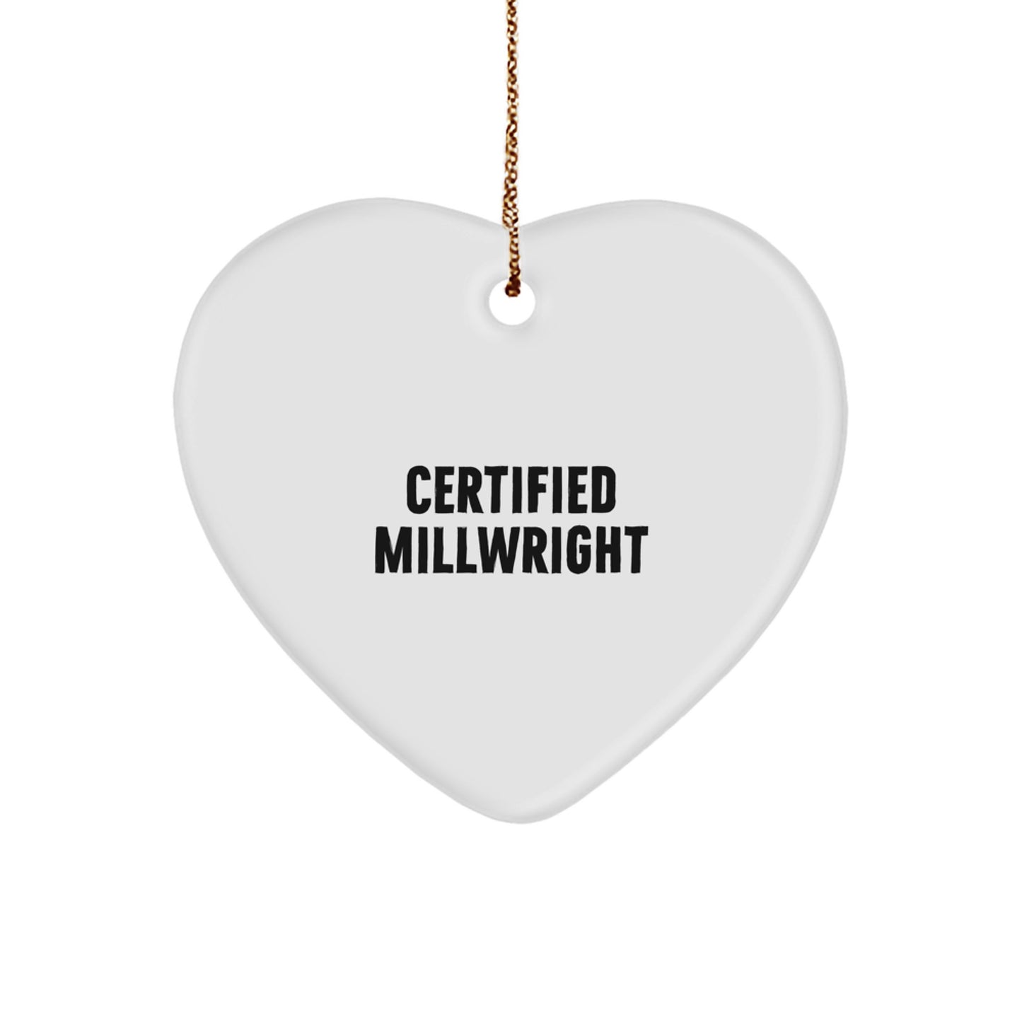 Funny Millwright Gifts from Friends - 'Certified Millwright' Heart Ornament for Christmas