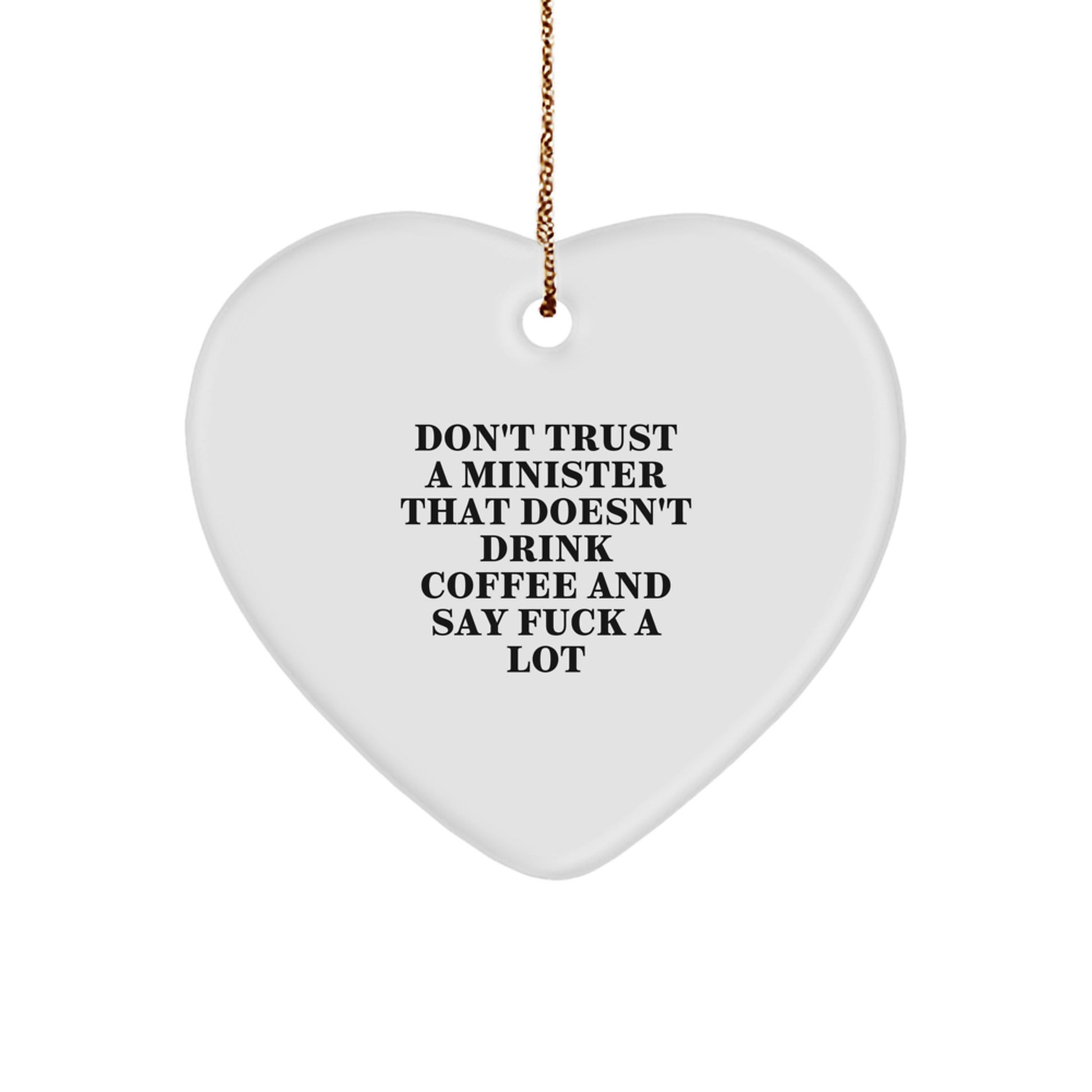 - Don't miss out and make it a Christmas to remember! Give the gift of laughter and appreciation with our 'Don't Trust A Minister That Doesn't Drink Coffee And Say F--k A Lot' Heart Ornament.
