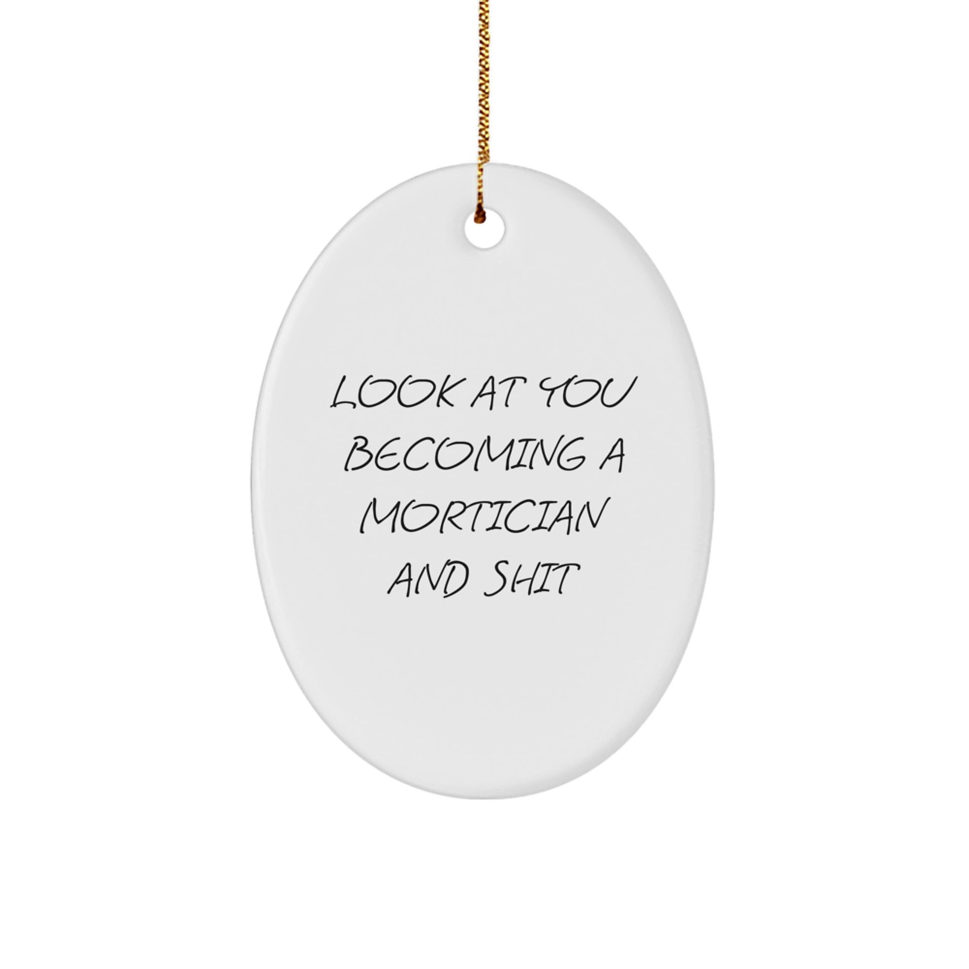 Funny Mortician Gifts for Friends and Family - 'Look At You Becoming A Mortician And Shit' Oval Ornament, Perfect for Christmas