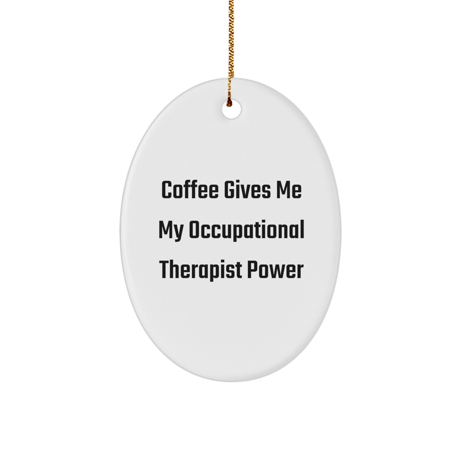 - 'Give the gift of laughter and appreciation this Christmas with this Coffee Gives Me My Occupational Therapist Power Oval Ornament - perfect for friends, family, or coworkers!'