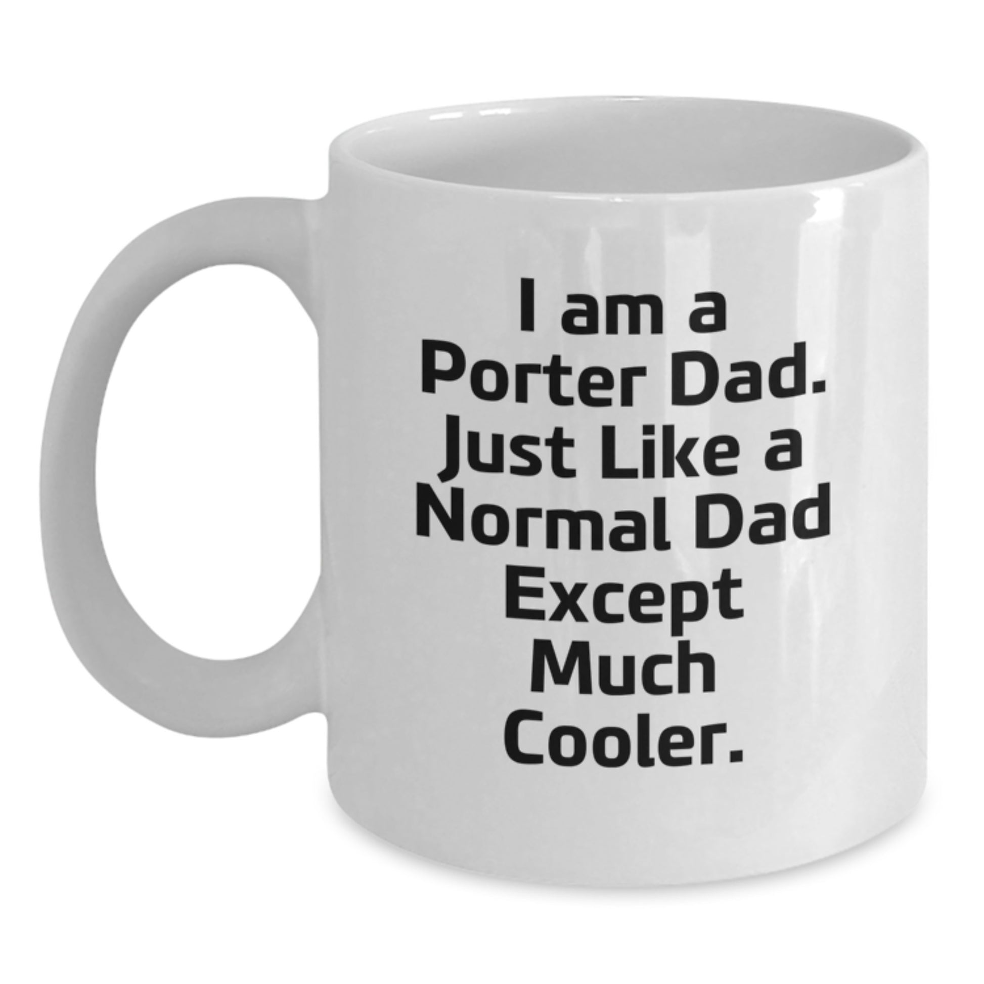 - Make a bold statement as a Porter dad with this unique white coffee mug, perfect for birthdays and special occasions. 'I Am A Porter Dad. Just Like A Normal Dad Except Much Cooler.' quote adds a touch of humor and personality to your daily coffee routine.
