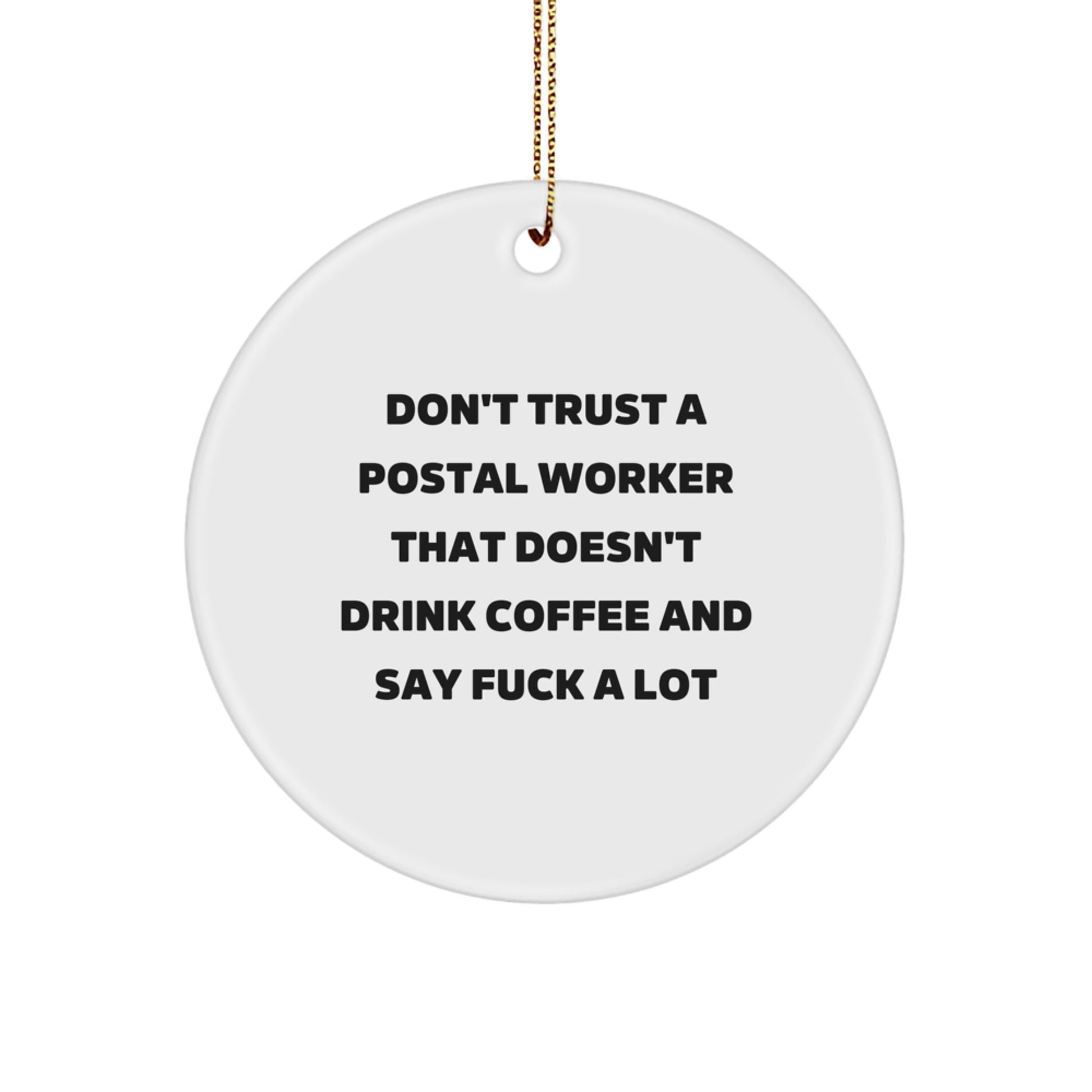 Funny Postal Worker Circle Ornament Gifts from Friends, Coworkers, Family - Don't Trust A Postal Worker That Doesn't Drink Coffee And Say 'F--k A Lot' - Christmas Unique Gifts