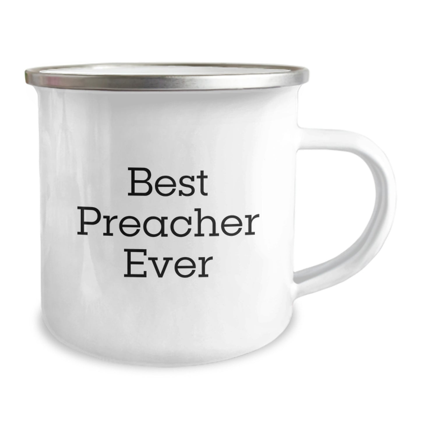 - Get ready to 'Best Preacher Ever' with this camping mug, perfect for outdoor enthusiasts and preachers alike! With its 12 oz capacity, stainless steel with enamel finish, and permanent printing, this mug is sturdy and long-lasting. Hand wash with mild detergent for easy cleaning.
