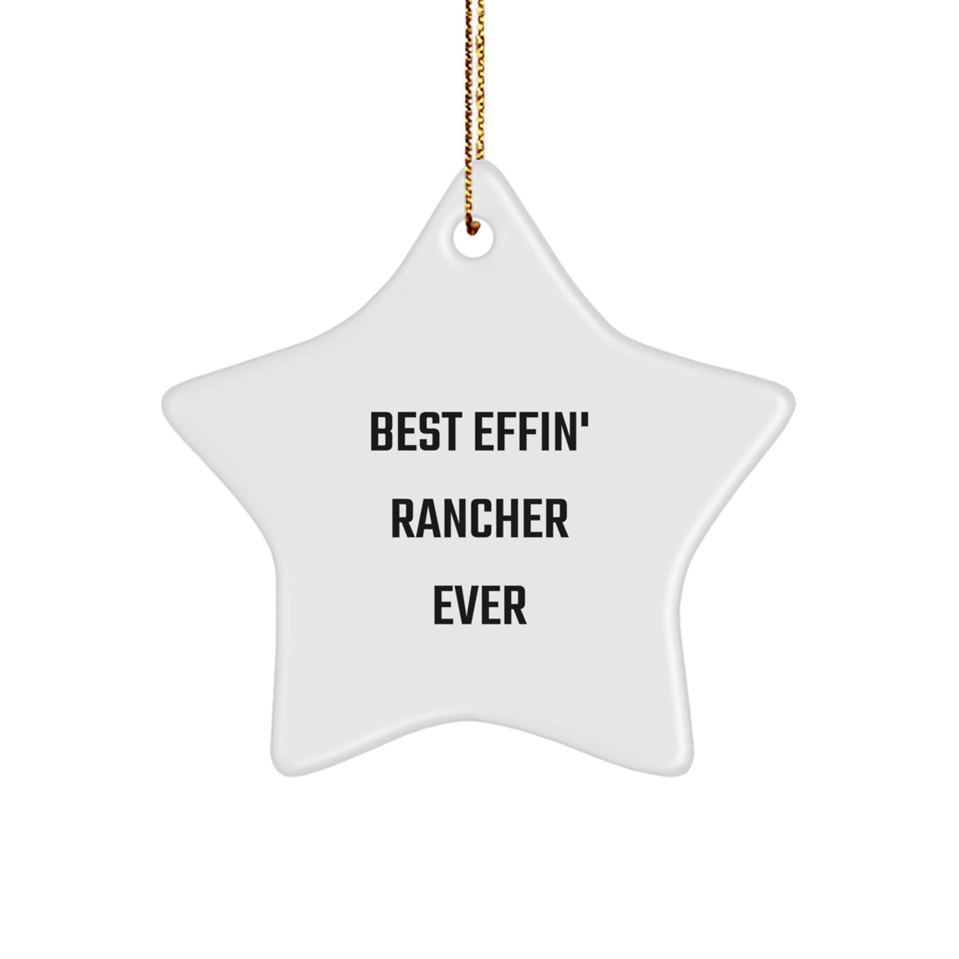- Our Best Effin' Rancher Ever Star Ornament is a unique and humorous gift for ranchers who appreciate a good laugh. 'Best Effin' Rancher Ever' is printed on the star-shaped ornament in bold, bright colors, making it a great conversation starter for any room.