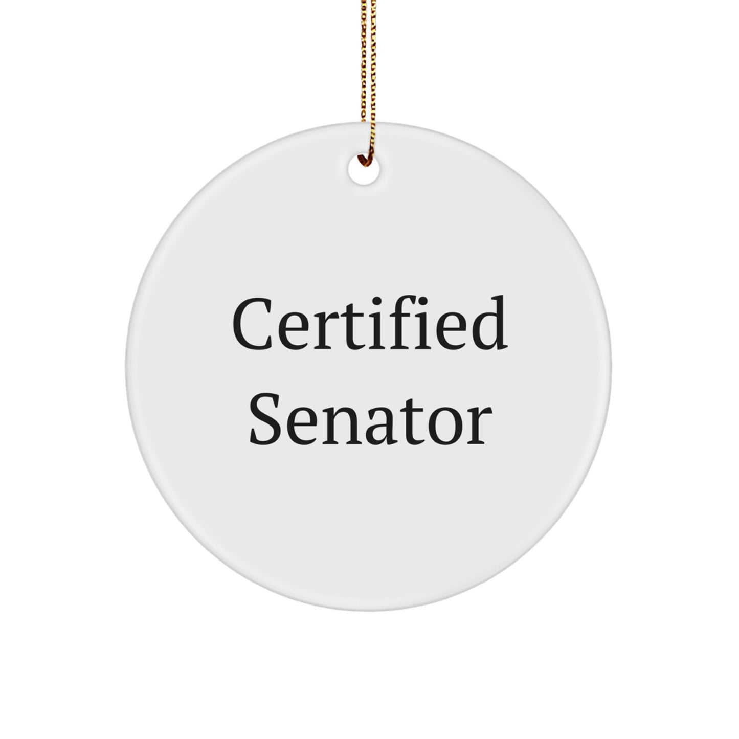 Funny Senator Gifts from Friends, 'Certified Senator' Circle Ornament for Men, White, Christmas Unique Gifts
