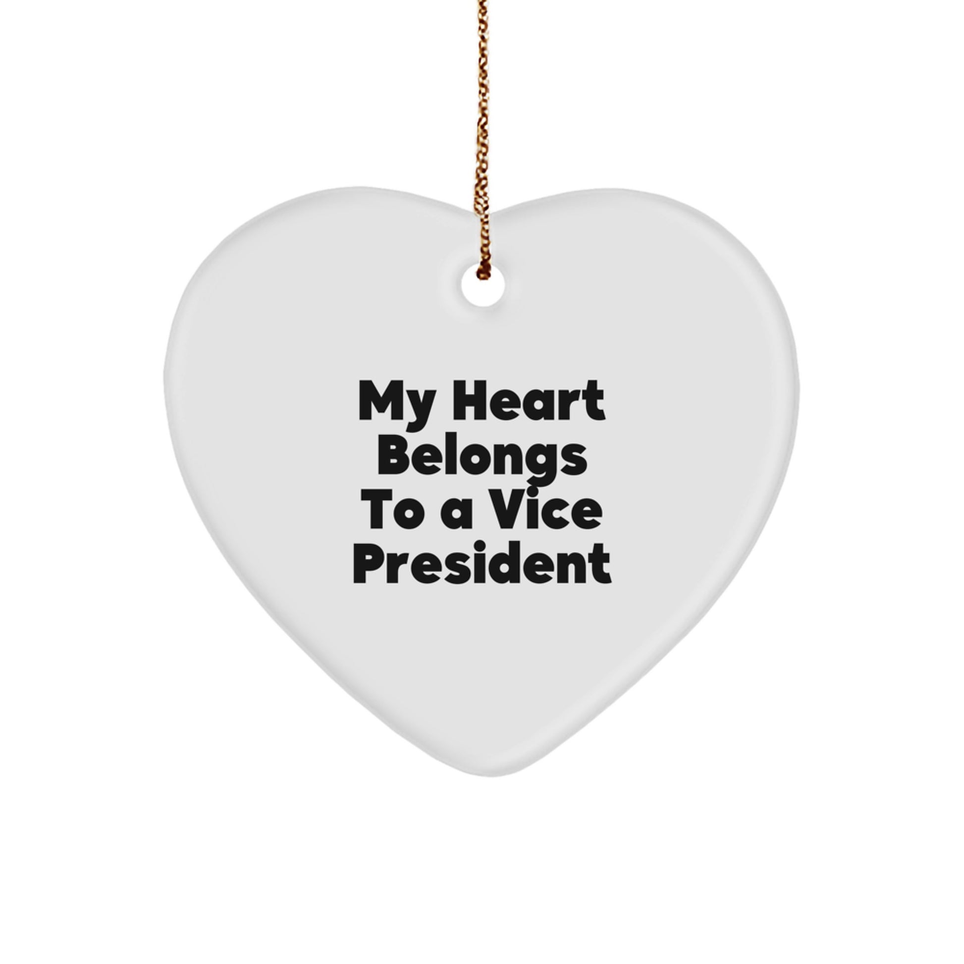 - This 'My Heart Belongs To A Vice President' Heart Ornament is a unique and thoughtful gift for any Vice President, showing your appreciation and admiration for their hard work and dedication.