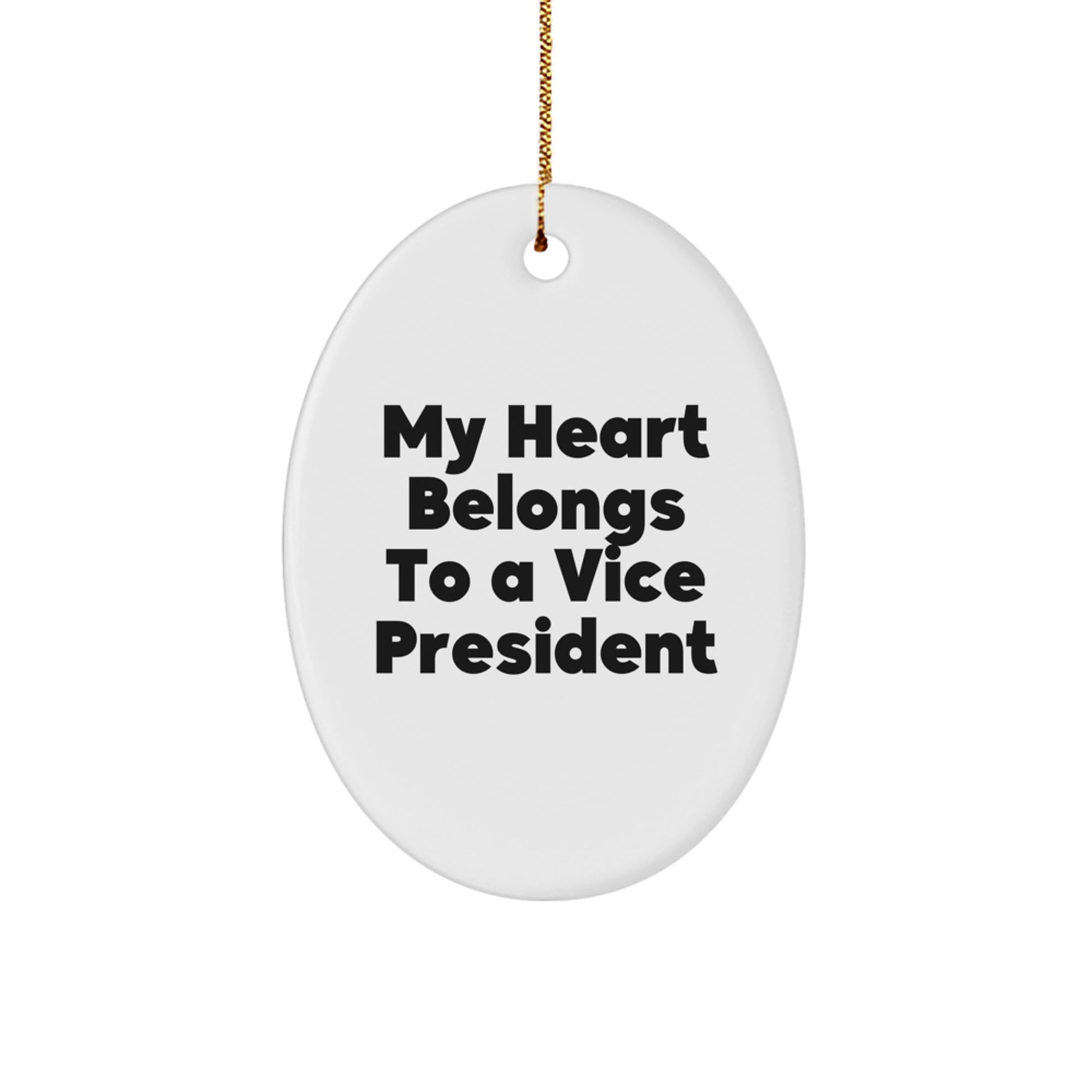 Funny Vice President Oval Ornament Gifts from Men, Unique for Vice President, Oval Shaped, White, My Heart Belongs To A Vice President, Christmas Unique Gifts to Vice President