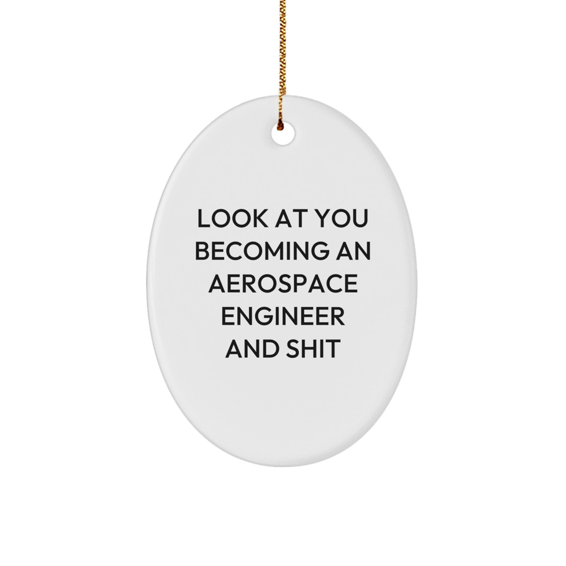 Gifts from Family for Aerospace Engineer - Oval Ornament with Funny Quote 'Look At You Becoming An Aerospace Engineer And Shit' - Perfect Christmas Unique Gift for Men or Women Friends Coworkers
