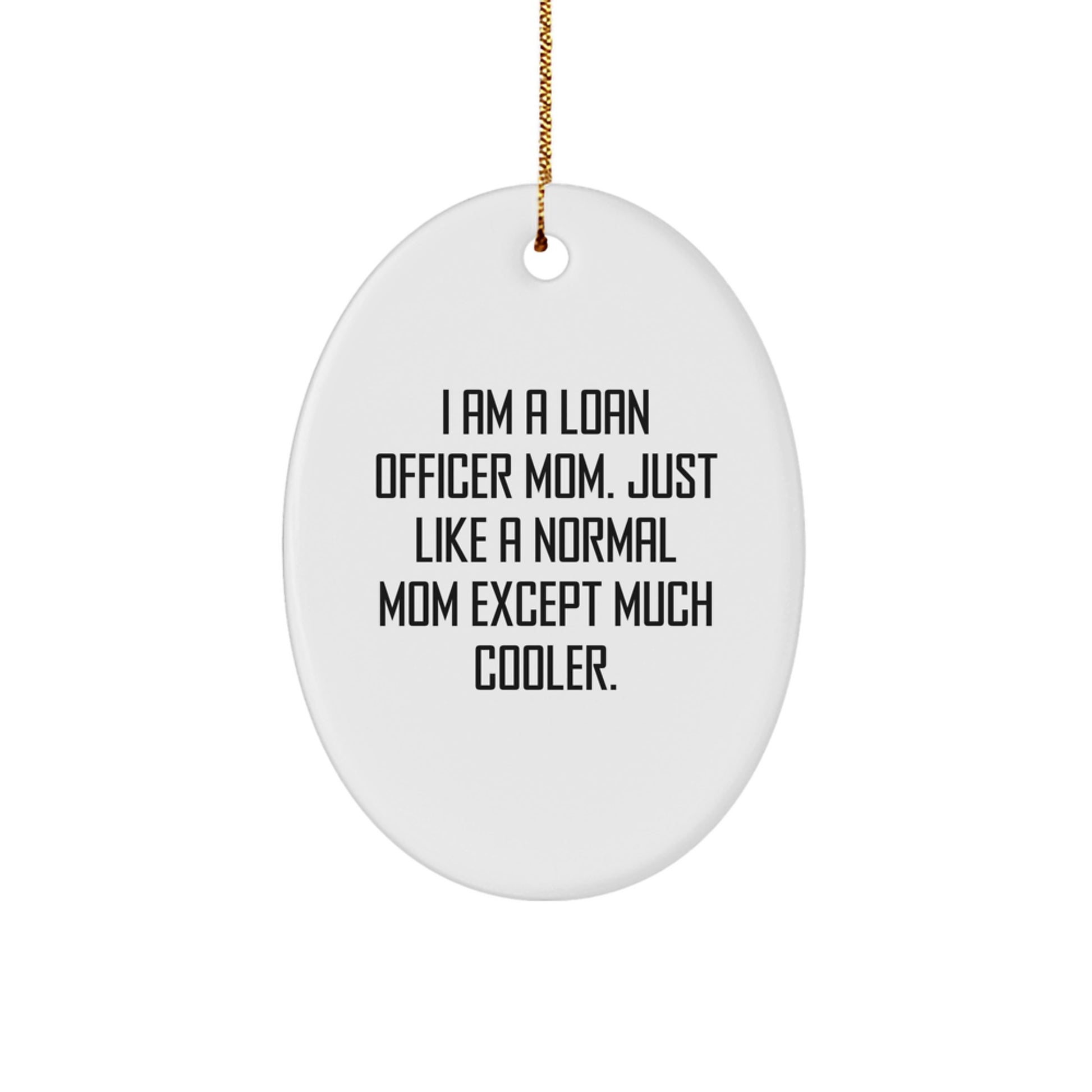 - This 'I Am A Loan Officer Mom. Just Like A Normal Mom Except Much Cooler.' Oval Ornament is a thoughtful gift for any Loan Officer mom, showcasing her personality and sense of humor.