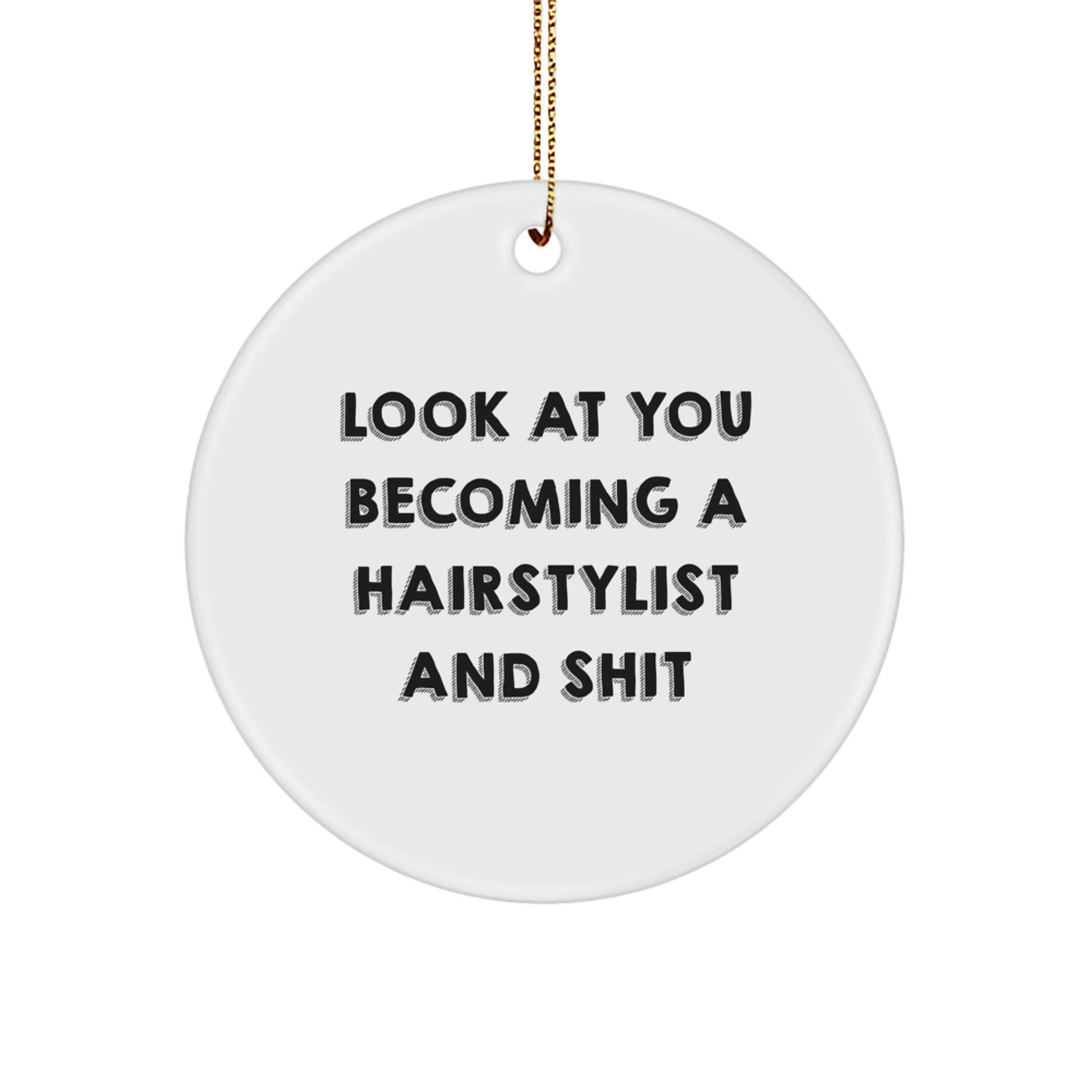 - Get your 'Look At You Becoming A Hairstylist And Shit' Circle Ornament today and make a statement with your hairstylist friends and family - a thoughtful gift for any occasion!