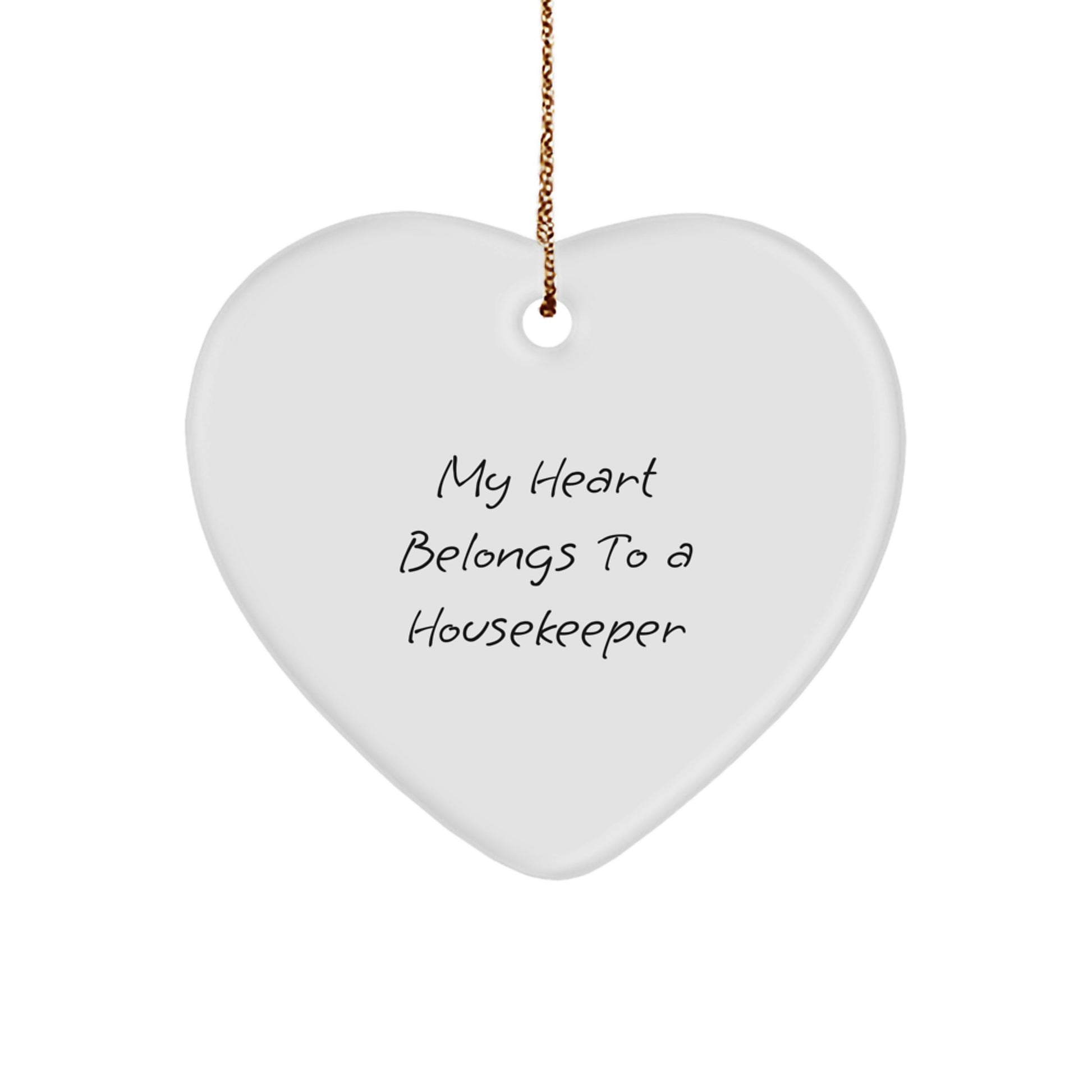 - This Housekeeper Heart Ornament is a unique and thoughtful gift for any housekeeper on your list, featuring the funny quote 'My Heart Belongs To A Housekeeper' that's sure to bring a smile to their face.