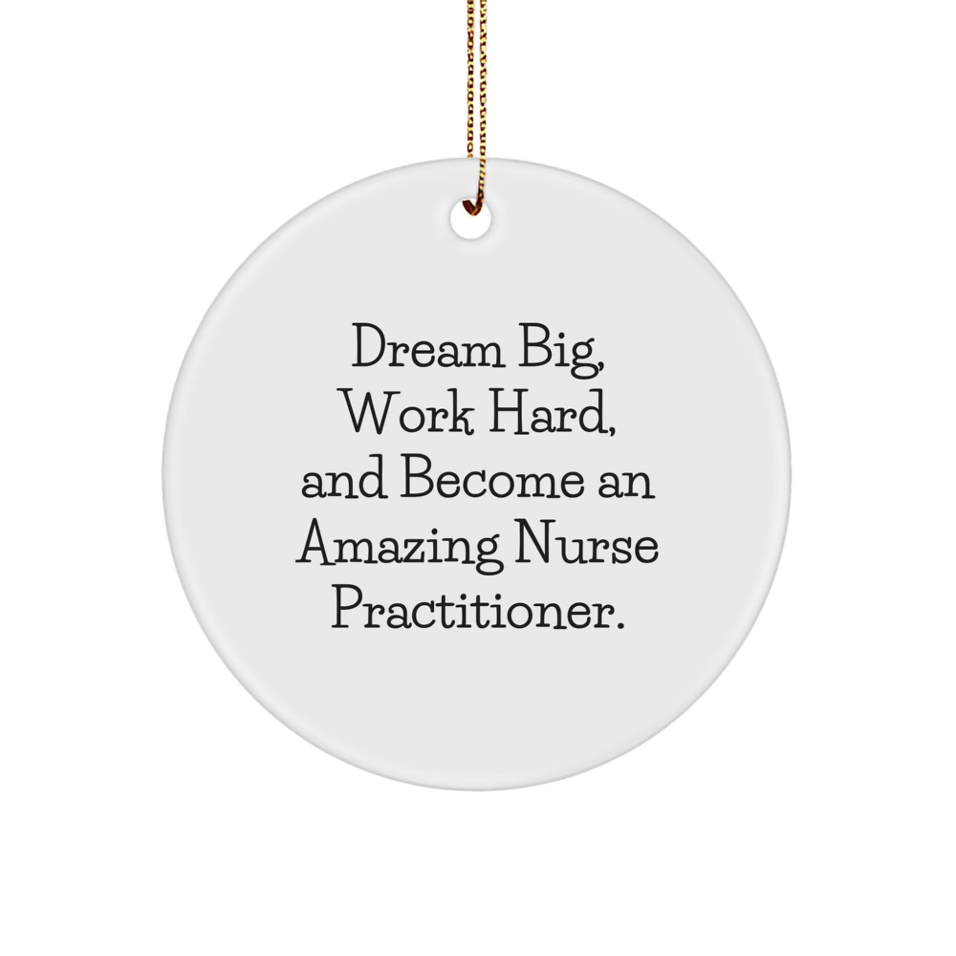- Make a thoughtful gift for the nurse practitioner in your life with this unique Circle Ornament, featuring the inspiring quote 'Dream Big, Work Hard, And Become An Amazing Nurse Practitioner.'
