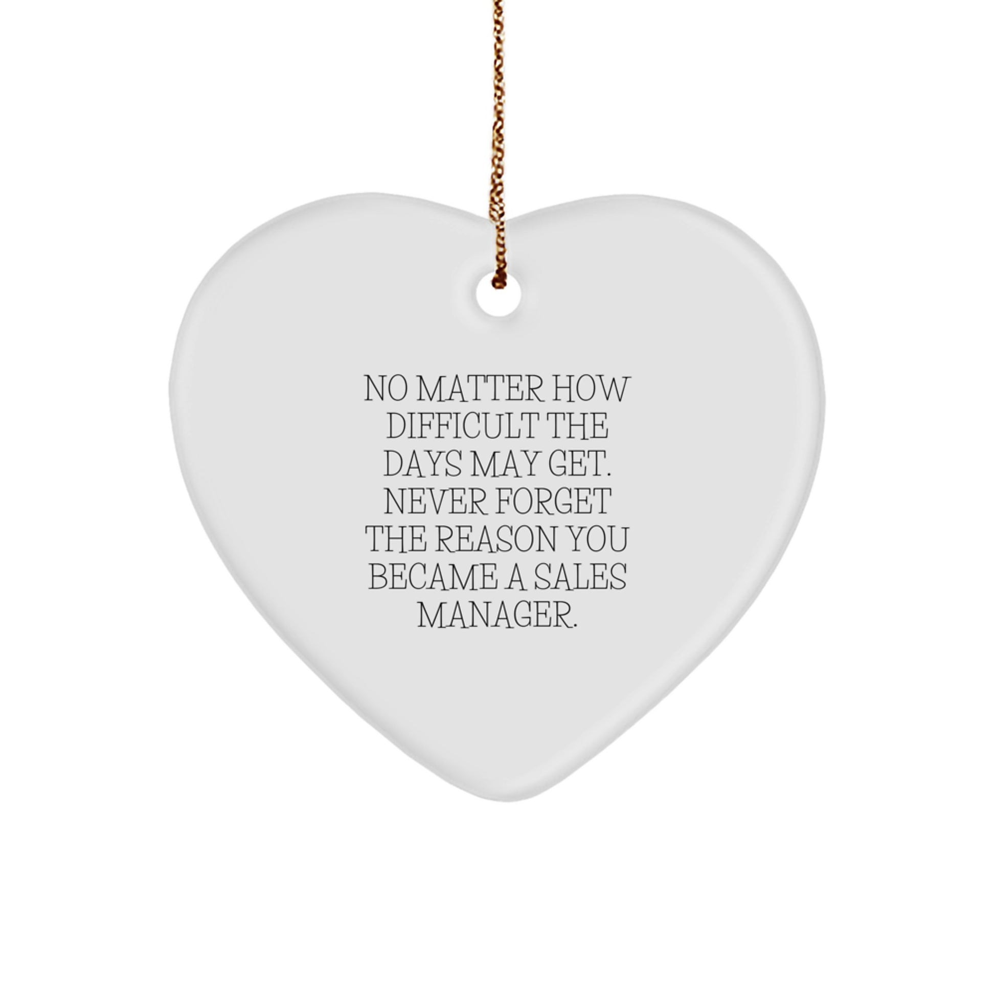 - Give the gift of inspiration and appreciation this holiday season with this beautiful Sales Manager heart ornament - perfect for friends, coworkers, or family members